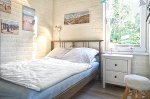 besitzt ein kuscheliges französisches Bett in den Maßen 1,40 x 2,00 m.